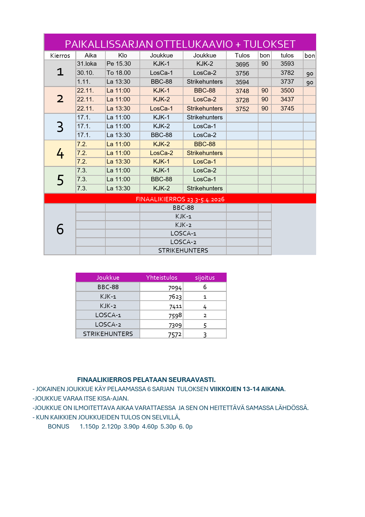 Paikallissarjan LOPPUTULOKSET 2024-2025